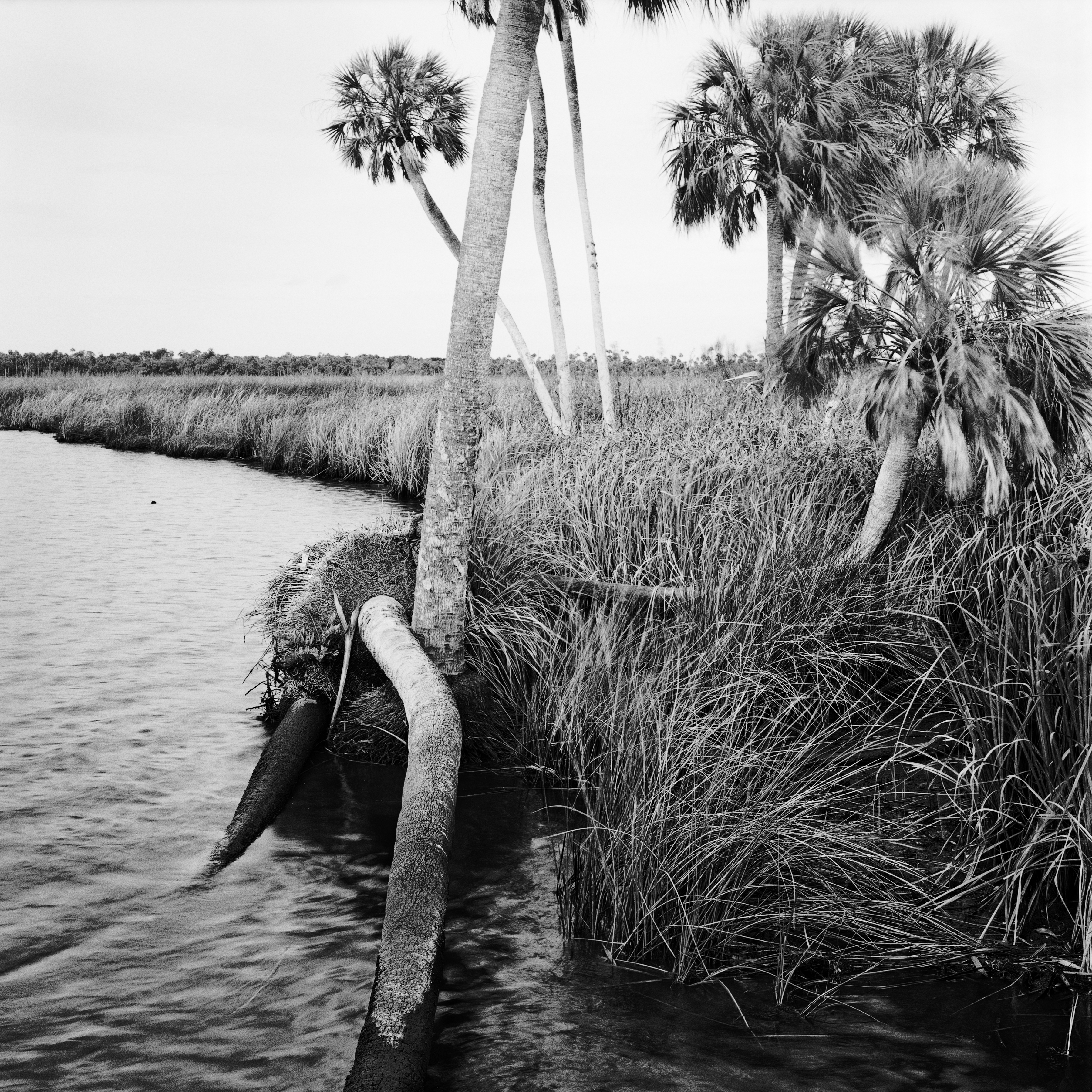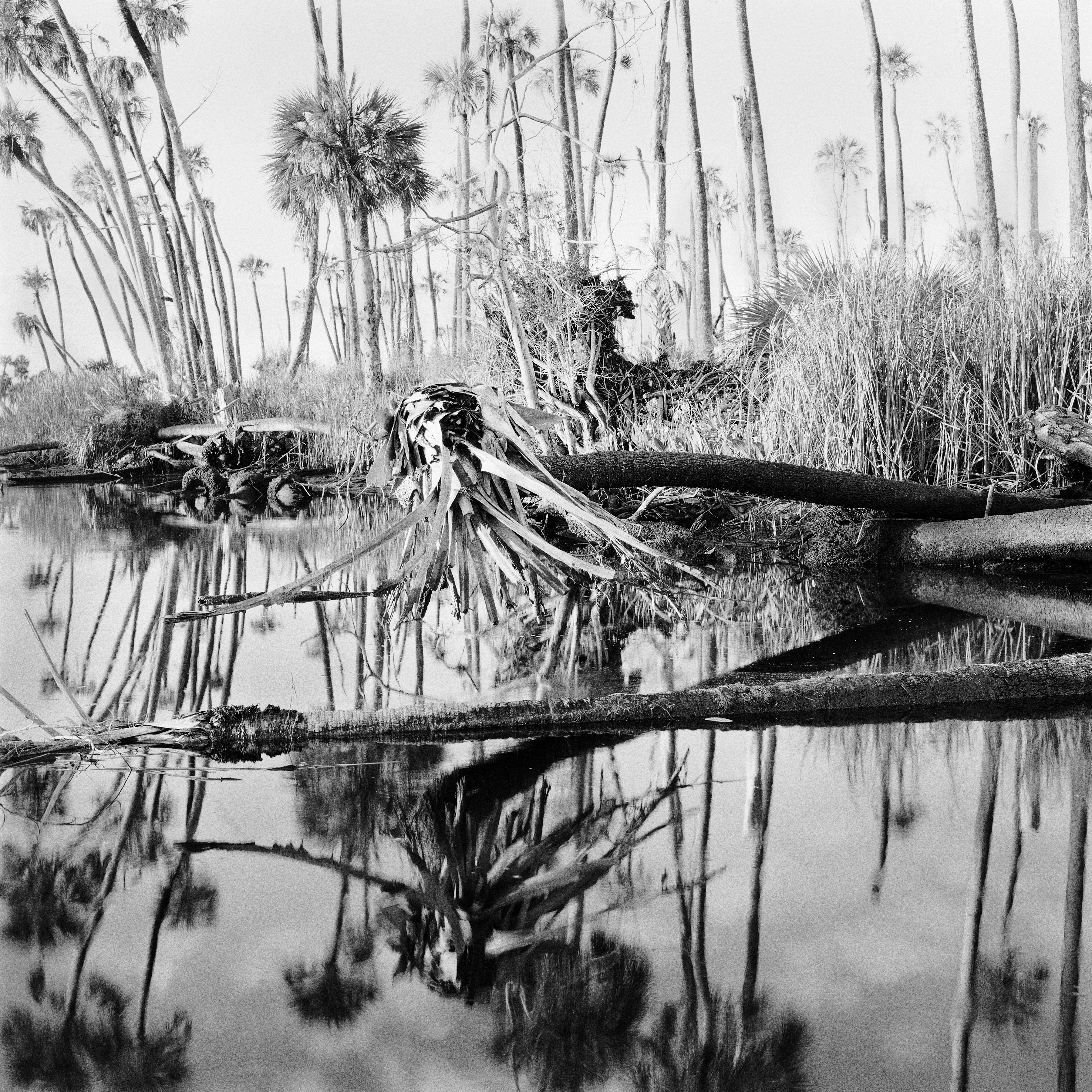 Dimmitt: The earlier photographs in the book are photographs of a place that was pristine and exotic. Photographs of things that I found beautiful and unusual. However, I gradually started to photograph death and destruction on a very broad scale. It just kept getting worse and worse. And it will continue to get worse and worse. Hurricane Idalia had a big impact down there. I don't even want to go see that. I had to adapt to shooting environmental destruction. I didn't know how to do this. I get asked about beauty. One thing I didn't want to do was to suddenly go from taking photographs of some place I found compelling and beautiful to using my camera to make ugly photographs or to make these wetlands look bad. When I was doing the event at the Asheville Art Museum with Alison Nordström recently, she said to me, this is a beautiful photograph. Just one of a dead palm in the river. I'm saying to myself, this image is brutal. This is straightforward damage. And it was, again, shot from a canoe, which makes it difficult to do. The creek bottom was vey soft so I can’t get out and walk. And I did the best I could. It's not a good negative, but I'm grateful that I don't have to print much of these images for exhibits because no one would want to show this work in an exhibit. But this is as straightforward a photograph as I can make. I don’t recall making any effort to photograph it beautifully. And I was surprised that Dr. Alison Nordström thought it was beautiful.